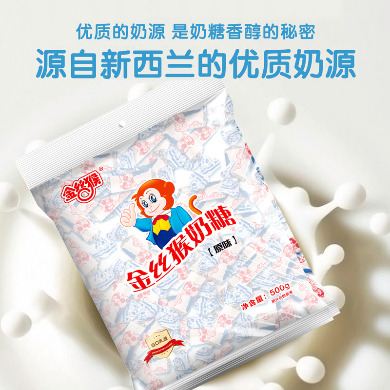过年金丝猴原味奶糖500g袋装结婚喜糖婚糖怀旧糖果零食新年糖童年
