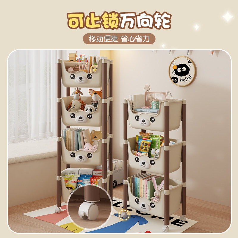 小推车置物架落地可移动多层带轮卧室儿童玩具零食书本收纳储物架