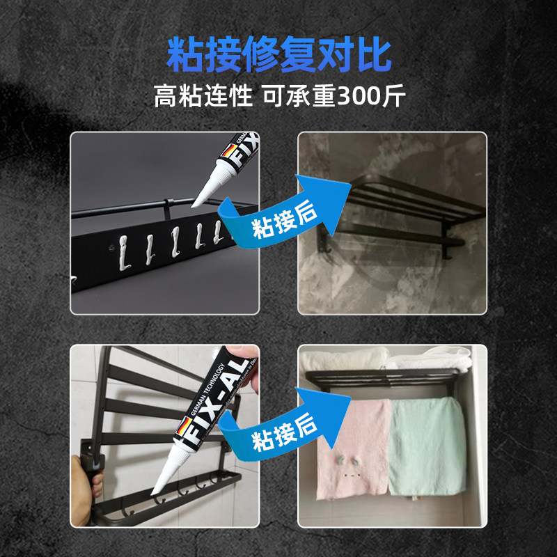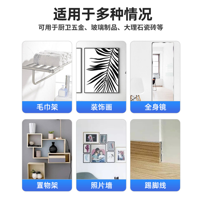 免钉胶强力胶高粘度粘墙面金属墙壁镜子瓷砖踢脚线卫生间置物架贴墙专用防水家用胶多功能粘得牢免打孔胶水