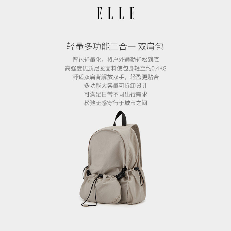 ELLE女包2025新款包包轻量多功能双肩包二合一户外通勤大容量书包
