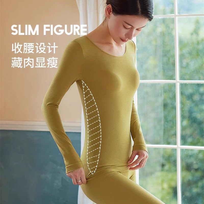 俞兆林羊绒蛋白保暖内衣女紧身美体薄款圆领内穿打底秋衣秋裤套装