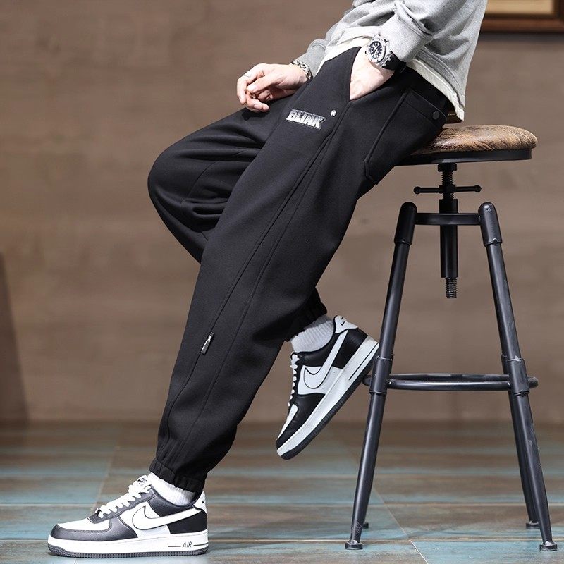裤子男秋冬季2026新款潮牌宽松束脚韩版加绒卫裤重磅休闲运动长裤