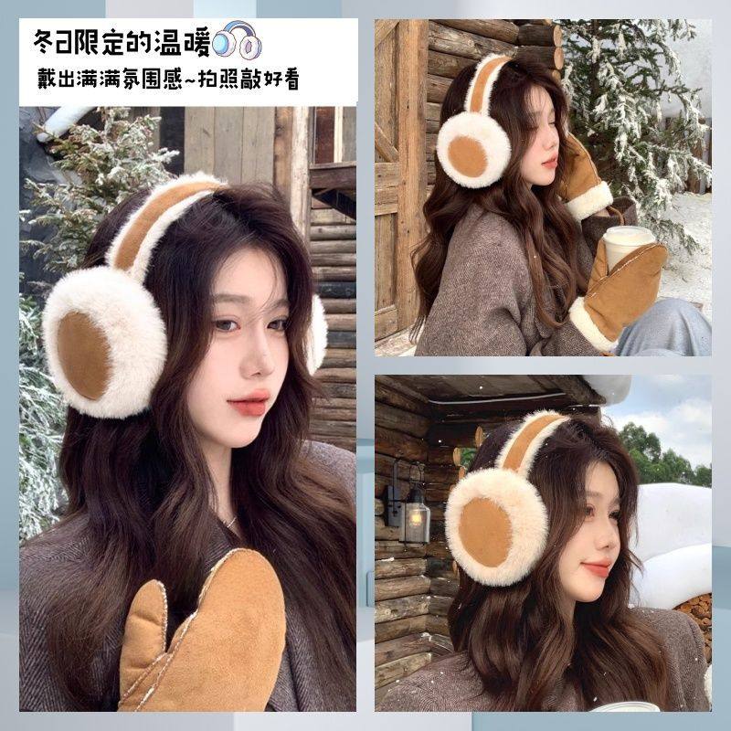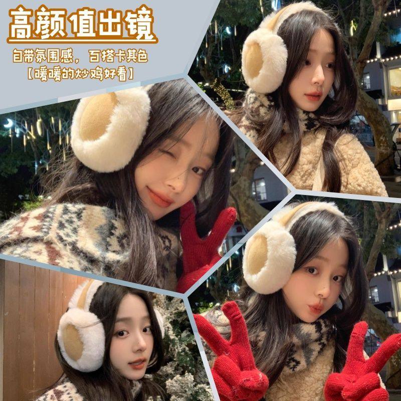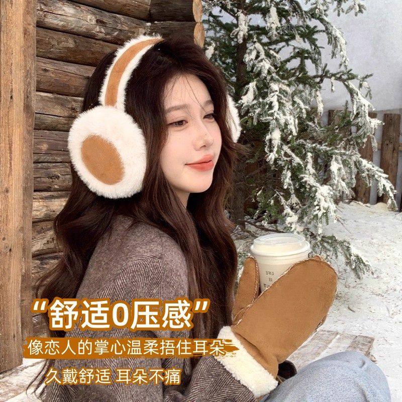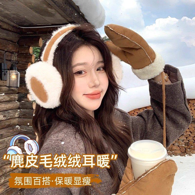麂皮绒耳罩女冬季护耳防冻保暖可折叠高颜值耳暖东北耳包白色氛围