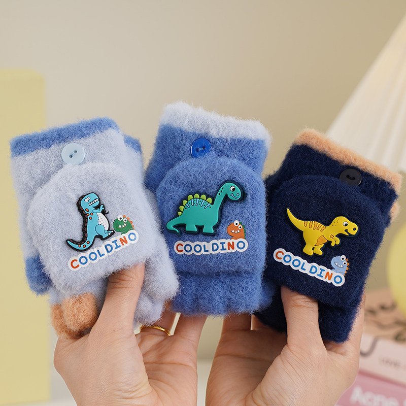 儿童手套男童可写字冬季保暖小孩五指翻盖男孩学生半指写作业冬天