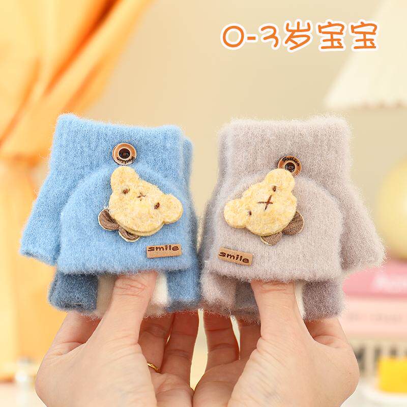 0-3岁小宝宝冬天手套婴儿冬季保暖儿童翻盖可爱婴幼儿男女童2半指
