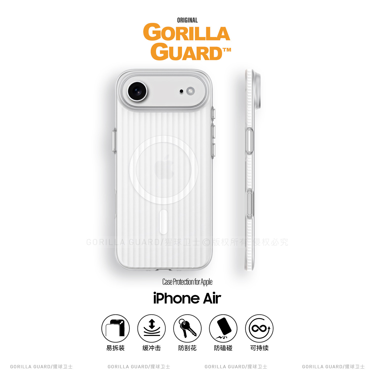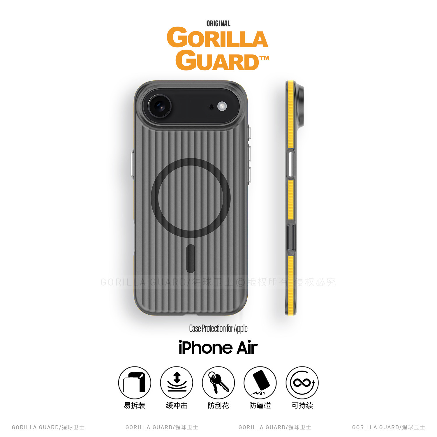 猩球卫士光栅撞色硬壳适用苹果Air磁吸手机壳iphoneAir保护套超薄亲肤全包防摔保护壳17Air磨砂透明新款外壳