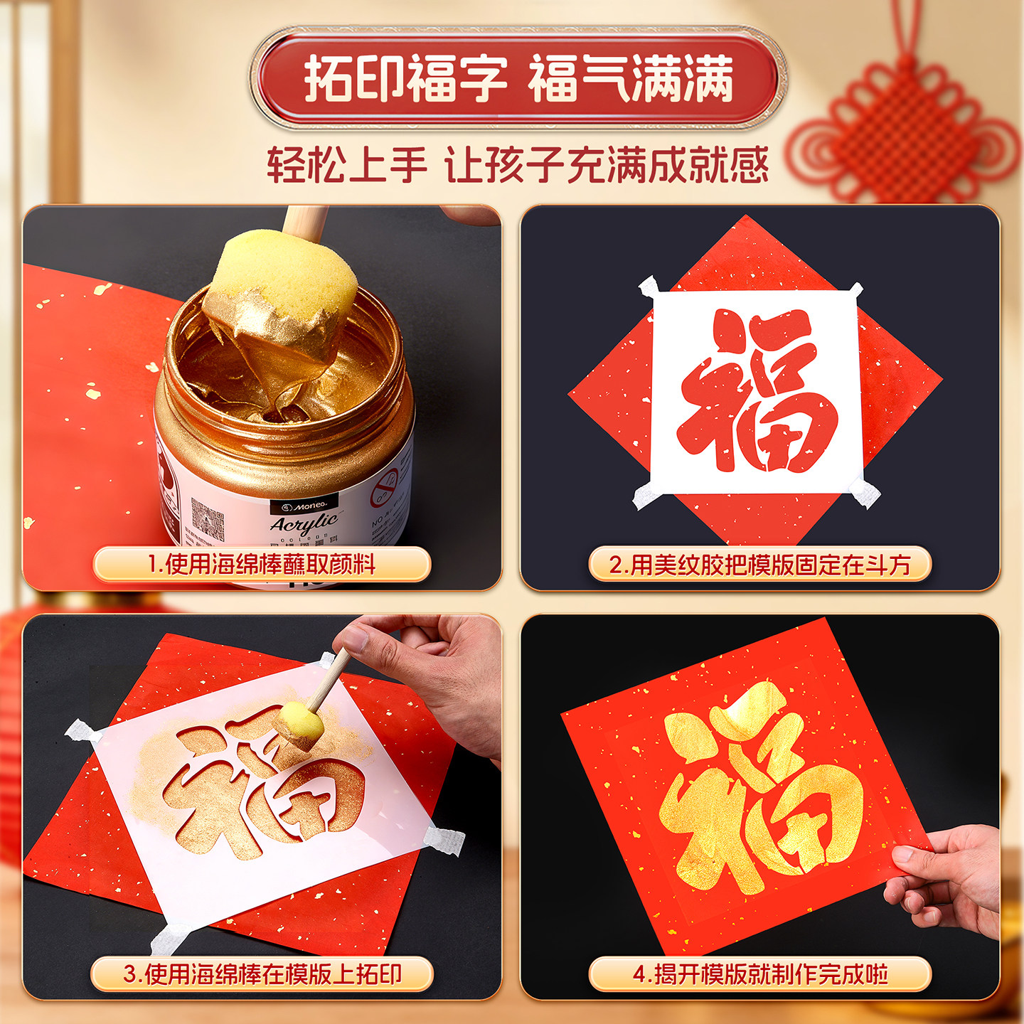 马利福字拓印材料包2026马年福字纸儿童手工diy工具套装过新年幼儿园非遗镂空福字模板模具学生春节红纸年画