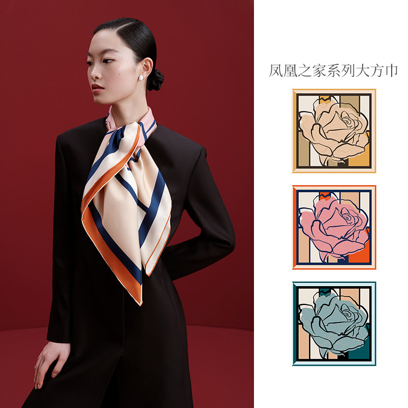 【凤凰之家】万事利100%桑蚕丝真丝丝巾双面印花大方巾浪漫不渝