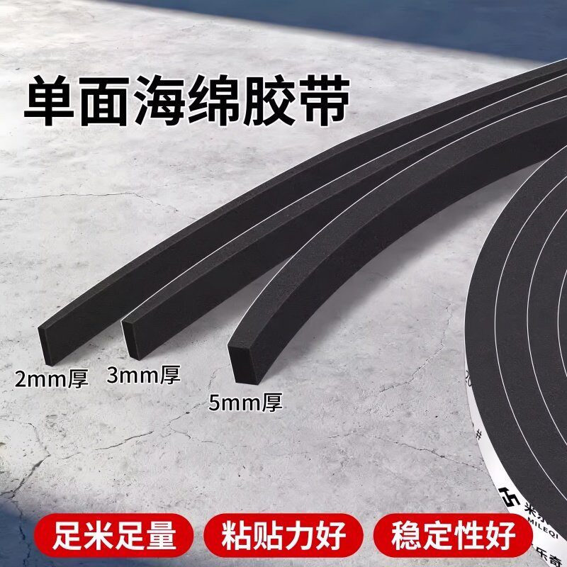 EVA黑色单面海绵泡沫胶带防震缓冲防水防潮胶外墙水包沙深槽胶带