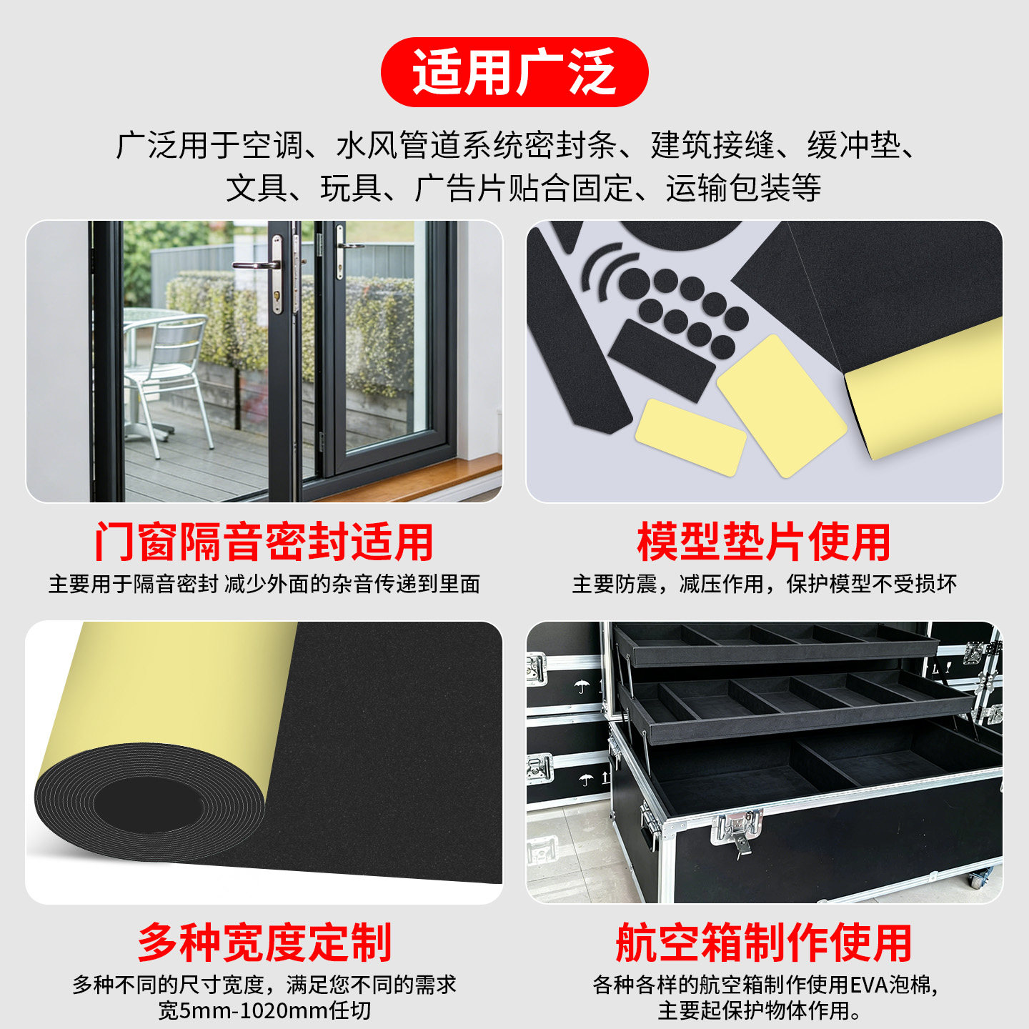 EVA海绵单面胶高粘密封防震降噪防潮保温隔热黑色泡沫板密封胶条