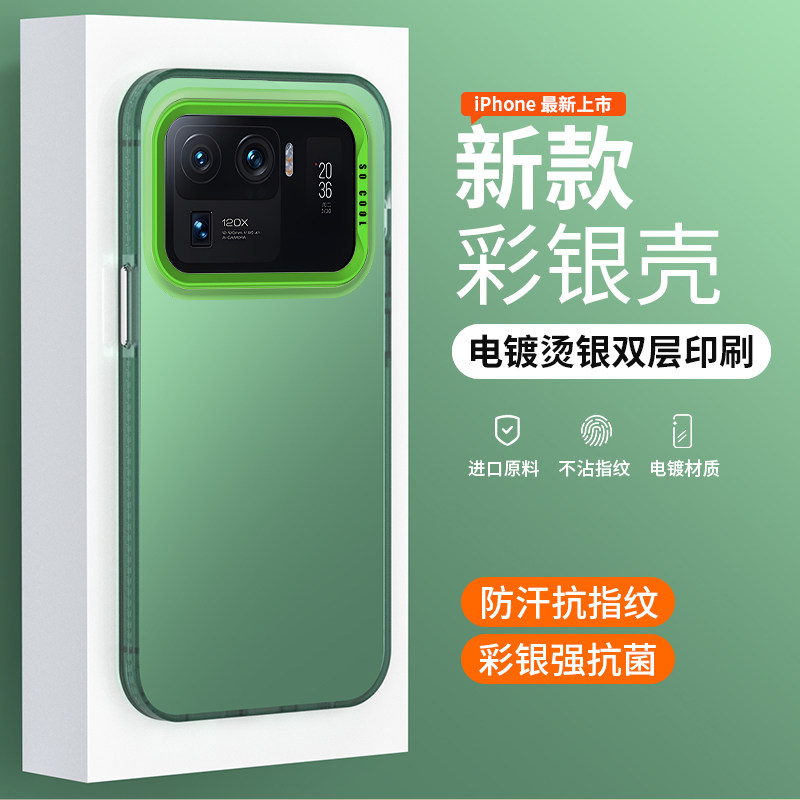 适用小米11ultra手机壳新款彩银镭射11pro男女网红高级简约纯色全包防摔11亚克力外壳情侣款个性创意保护套