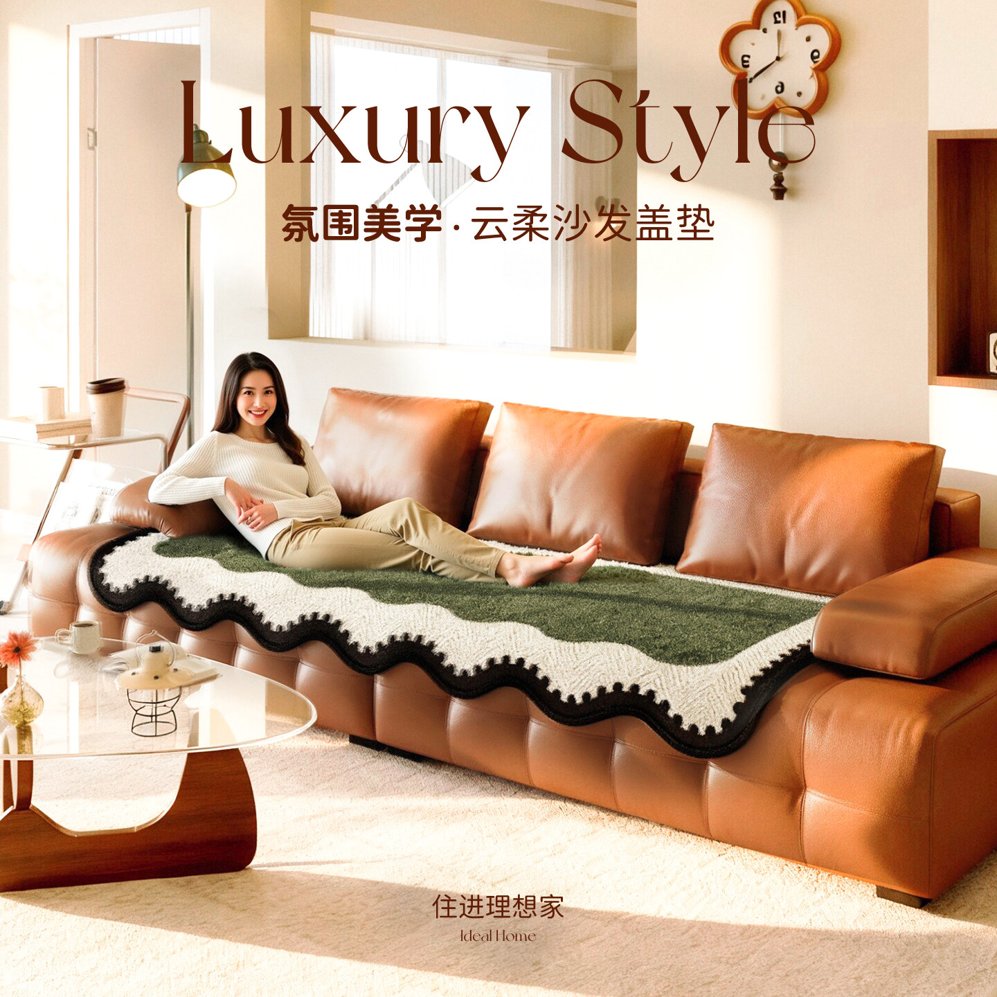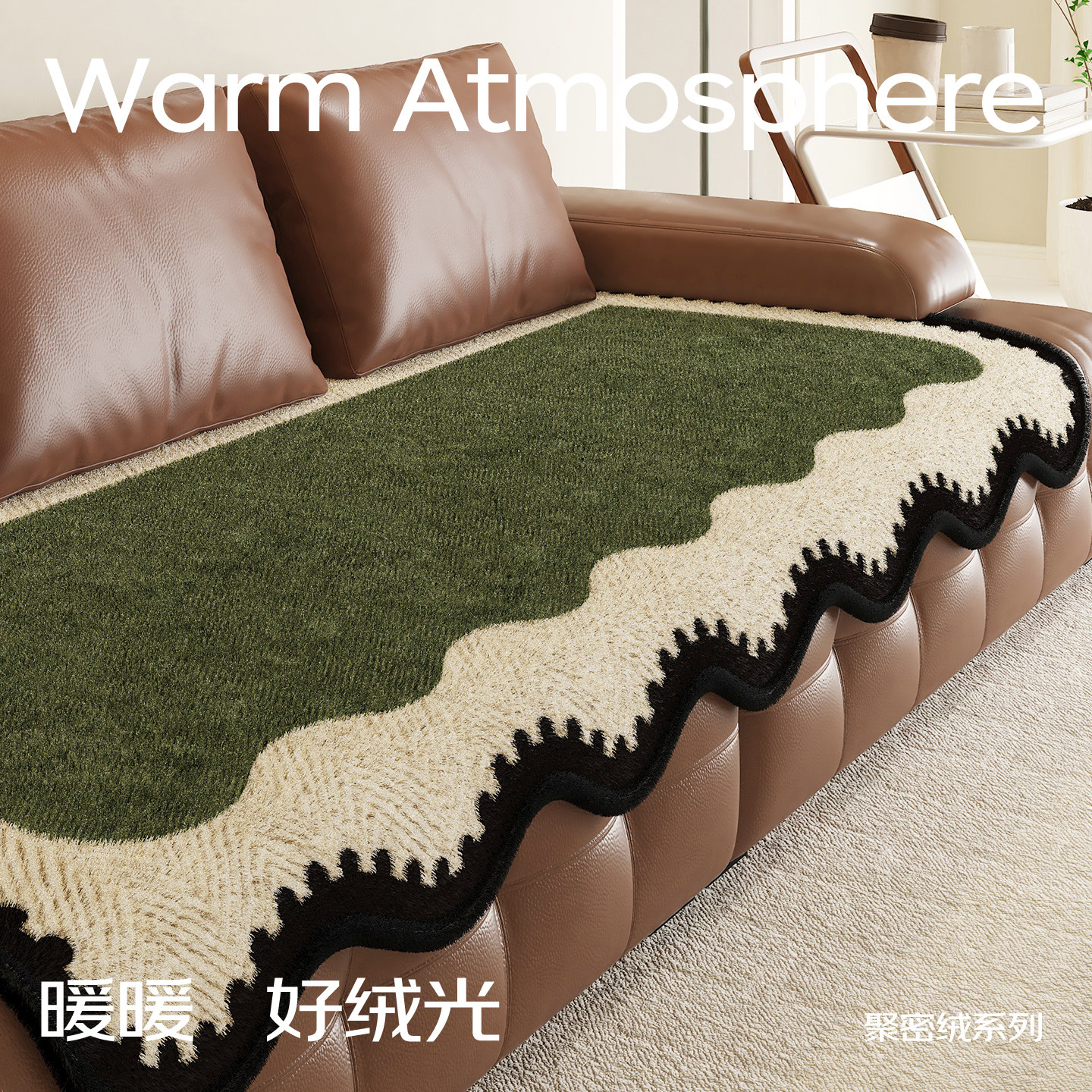 中古风异形毛绒沙发垫冬2025新款加厚皮沙发坐垫防滑盖布巾客厅