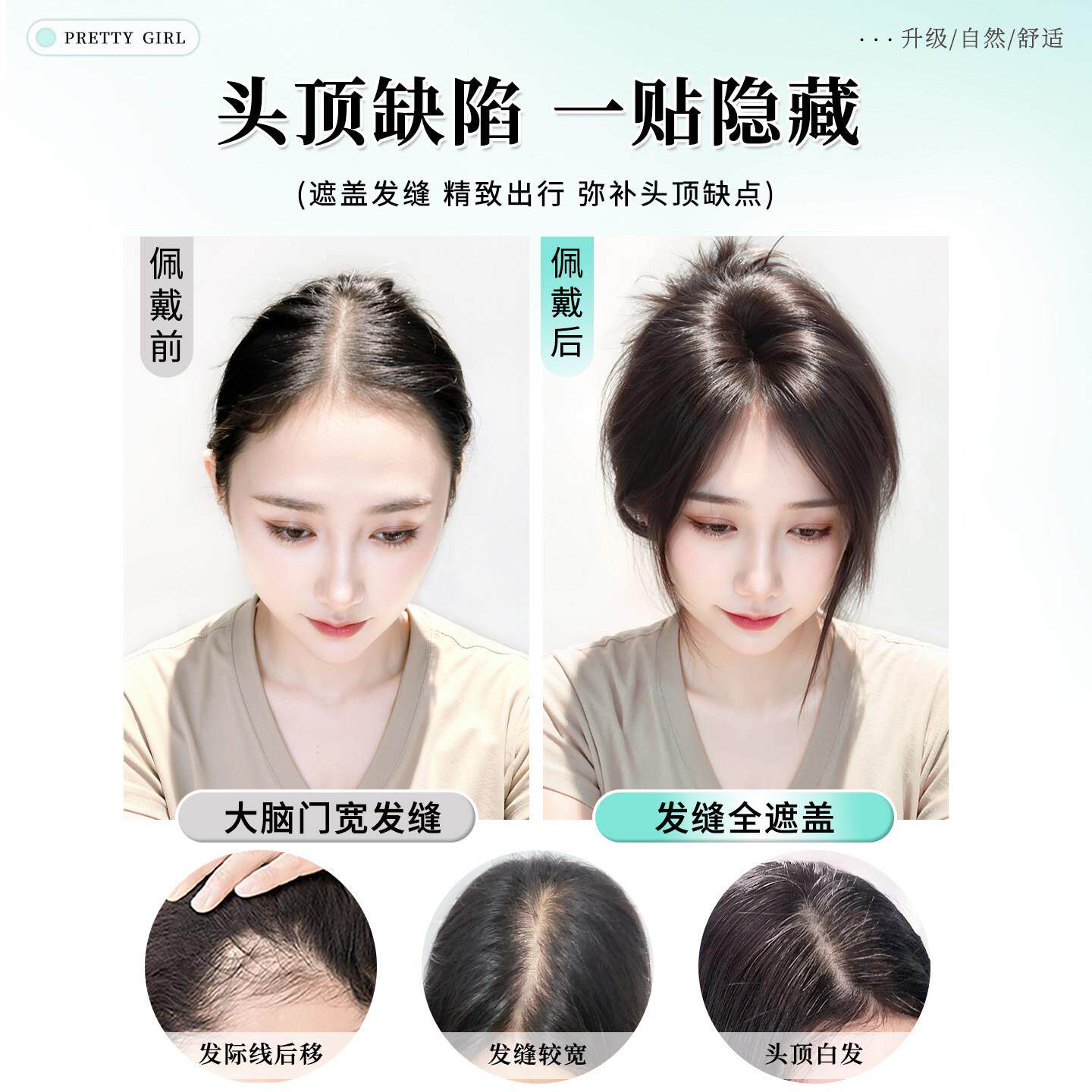 假发片女头顶增发量遮真发白发蓬松高颅顶轻薄隐形刘海无痕补发片