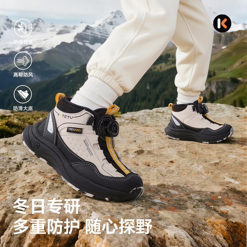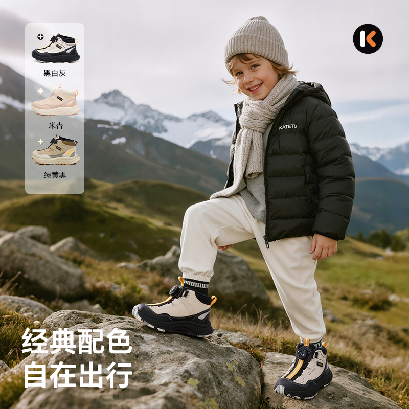 卡特兔儿童户外运动鞋2025冬季防滑耐磨加绒保暖跑步鞋儿童棉