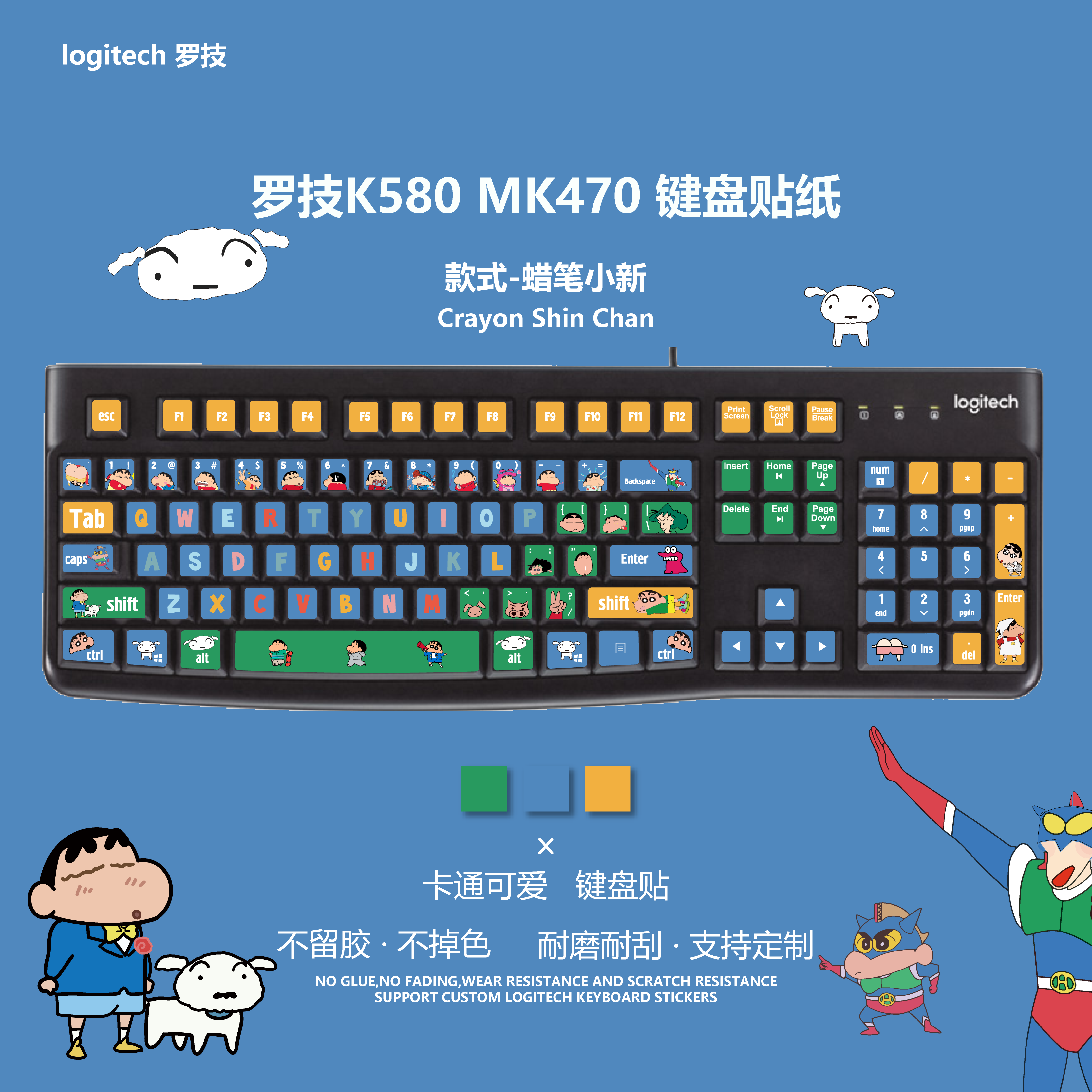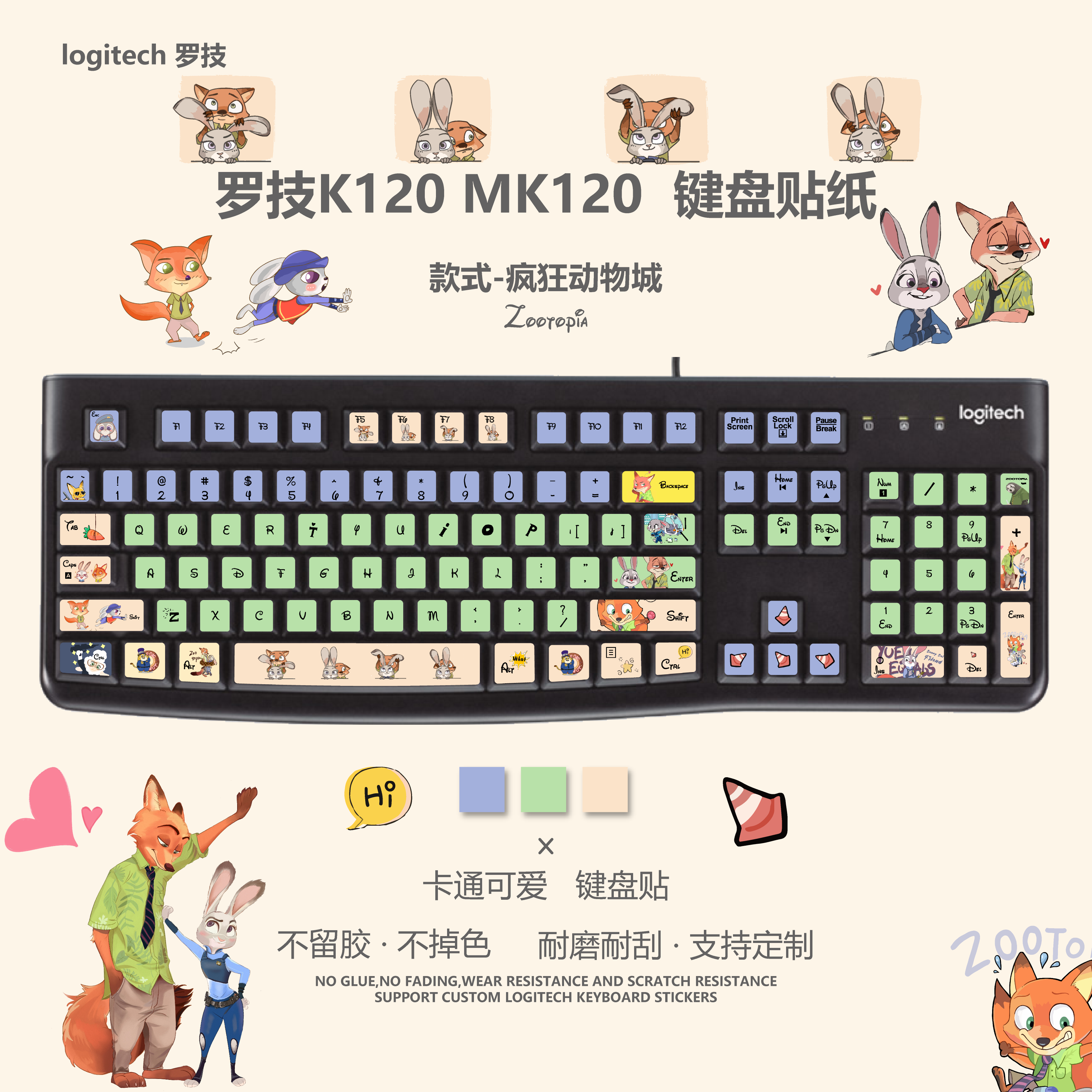 一二布布适用于罗技K120 MK120键盘贴纸台式机台式按键贴字母贴纸