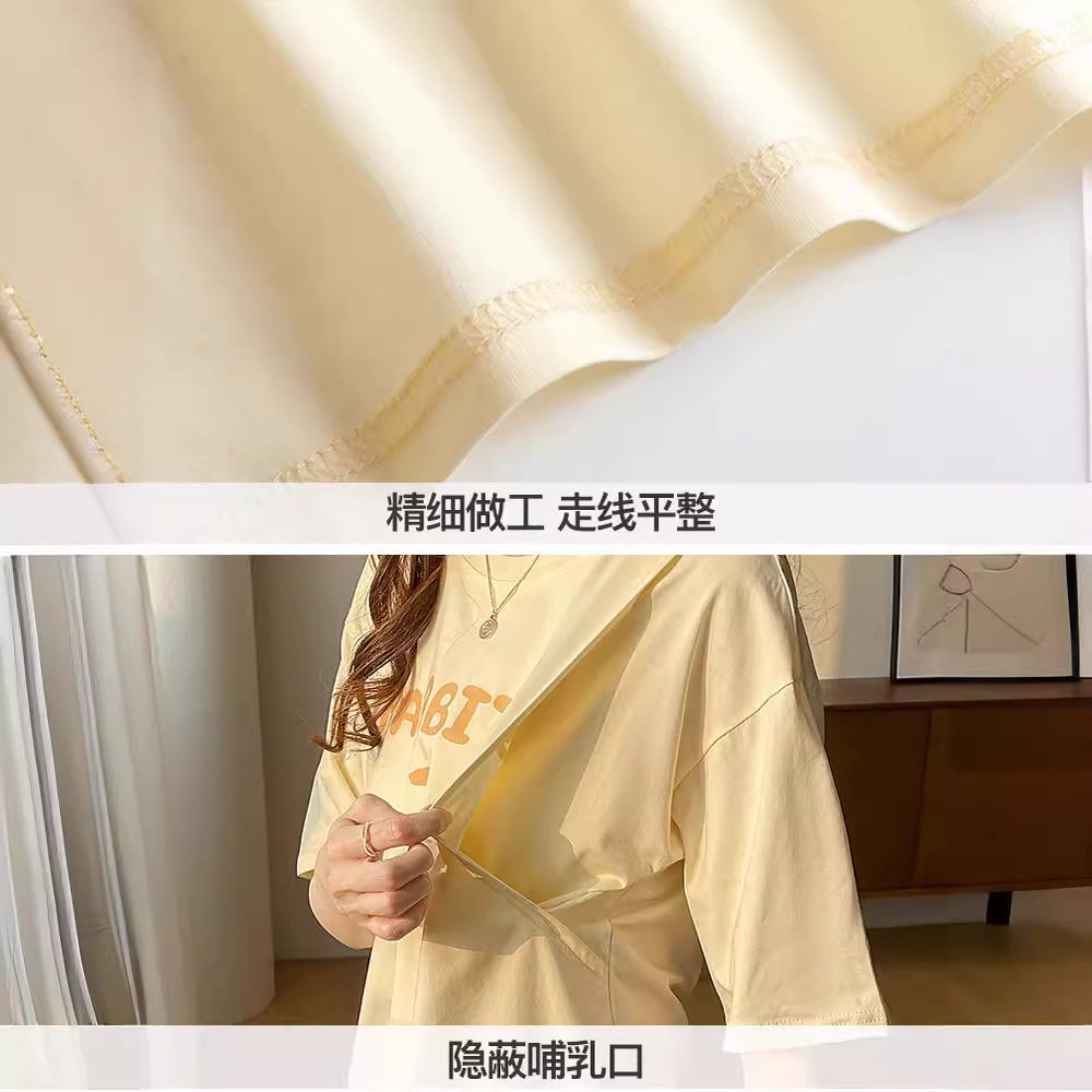 短袖哺乳衣外出孕妇T恤款夏季喂奶上衣服t恤外穿期半袖产后春夏装