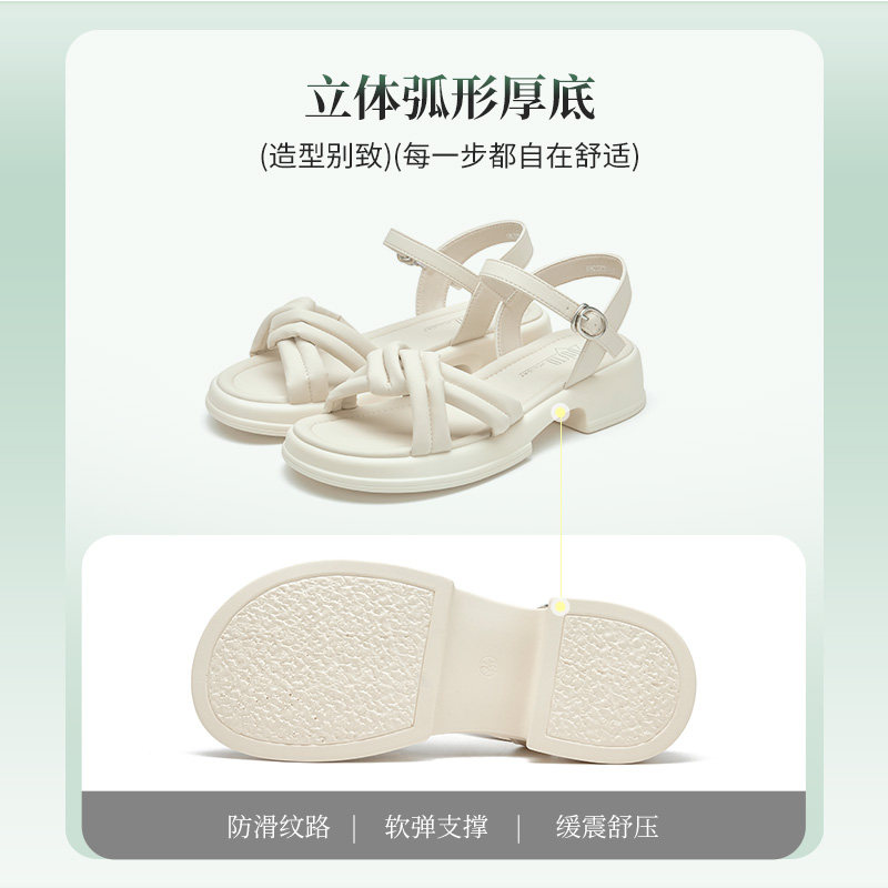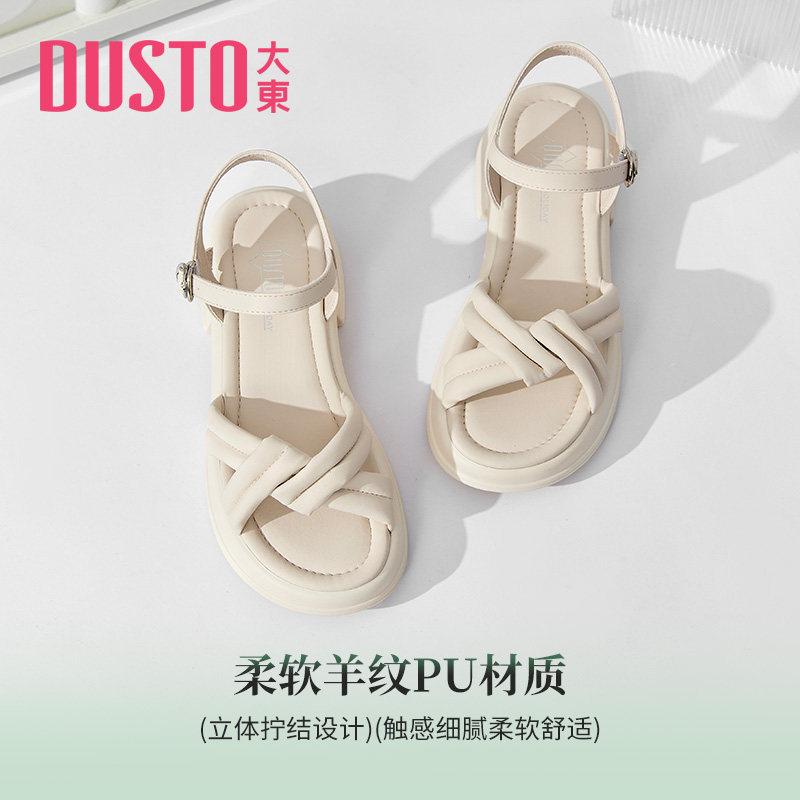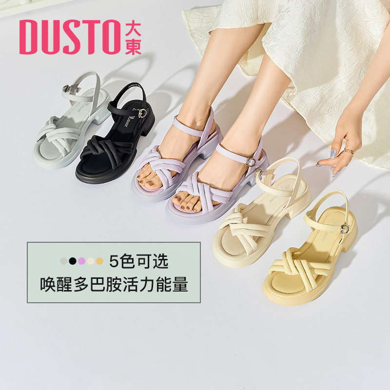 大东凉鞋女夏季休闲一字扣厚底简约纯色粗跟女鞋0216