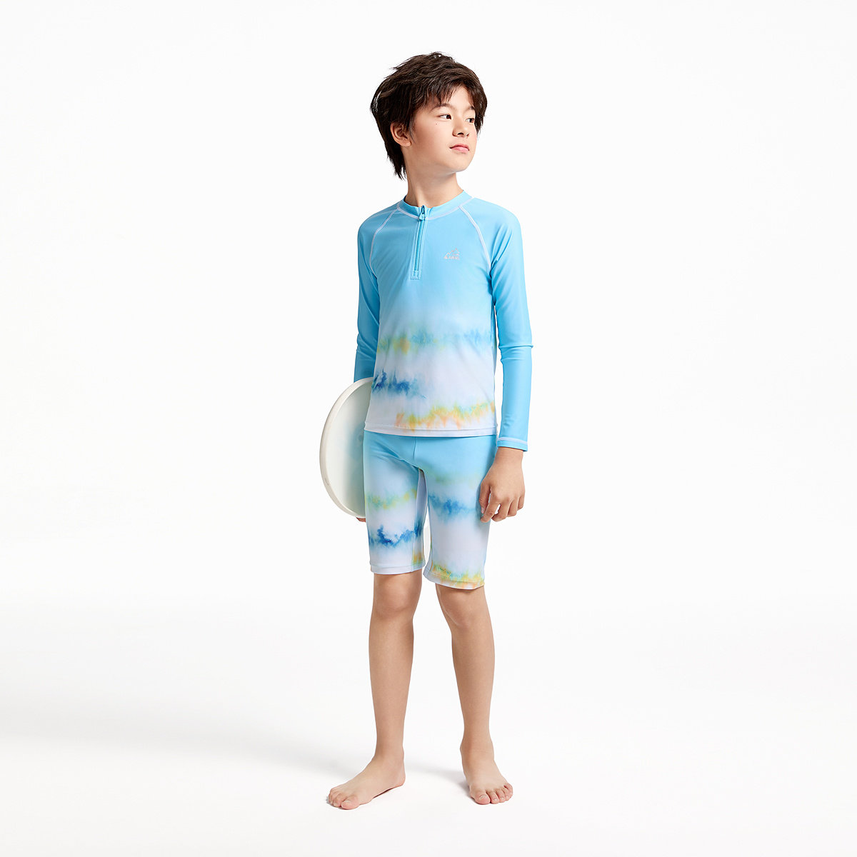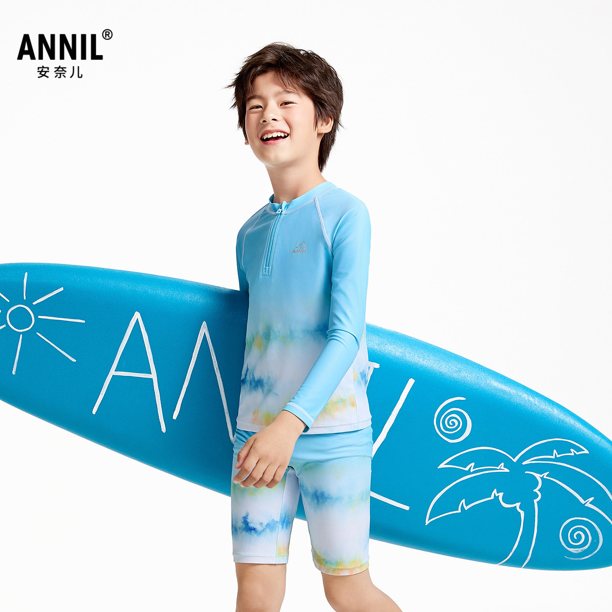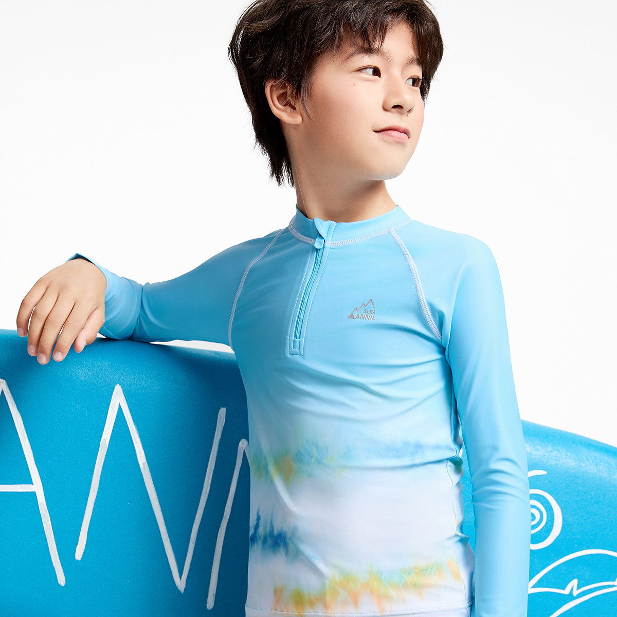 安奈儿童装男童分体泳衣裤长袖套装夏新款高弹疏水渐变色彩