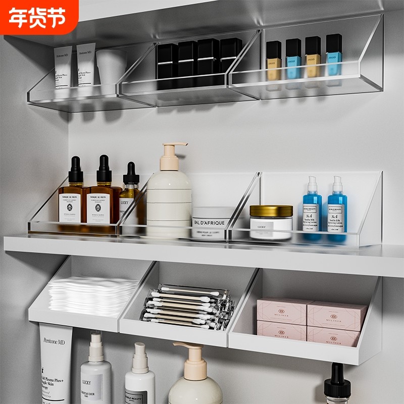镜柜收纳盒浴室柜内置物架卫生间斜口壁挂化妆品口红利用分层分类
