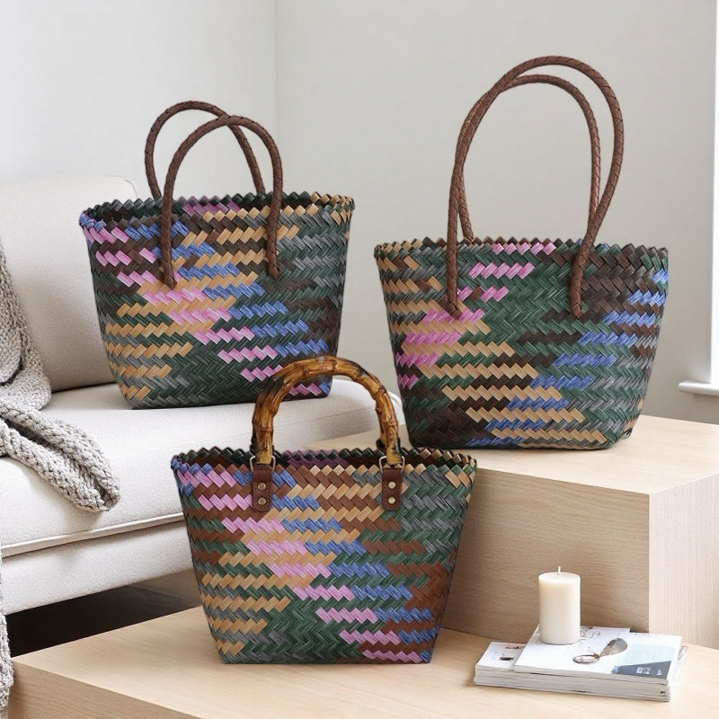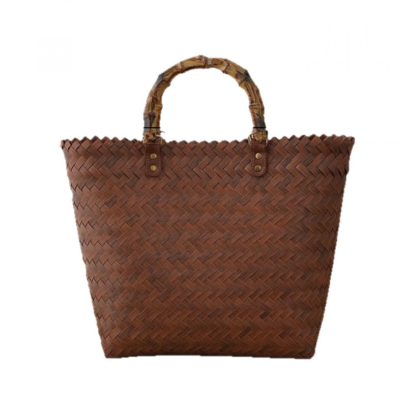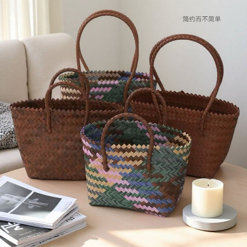 手工编织菜篮子竹节手提包草编包包复古大容量纯手工编织包时尚