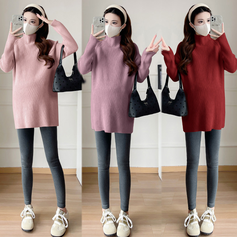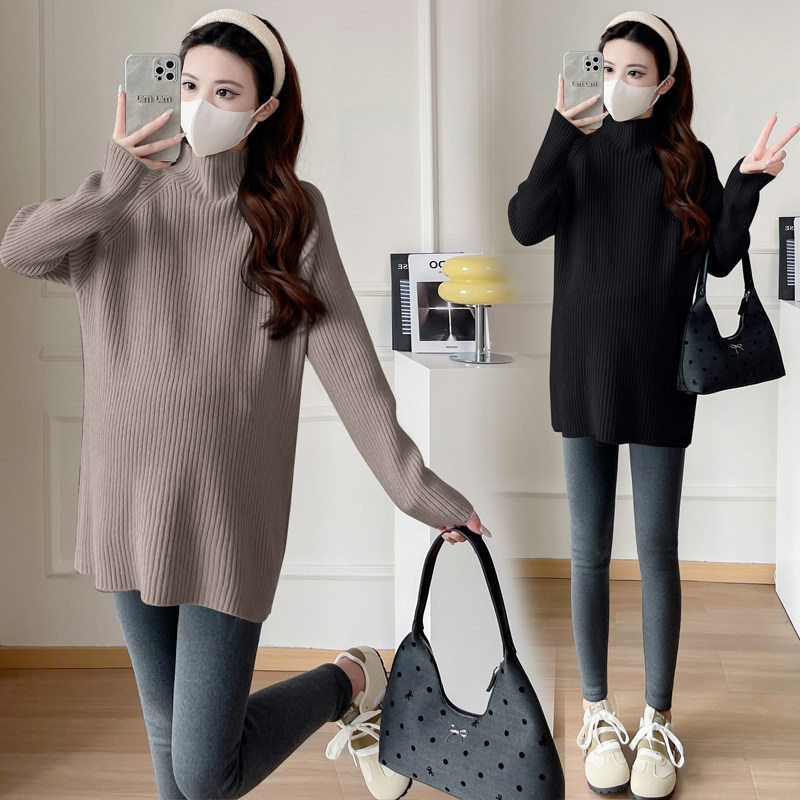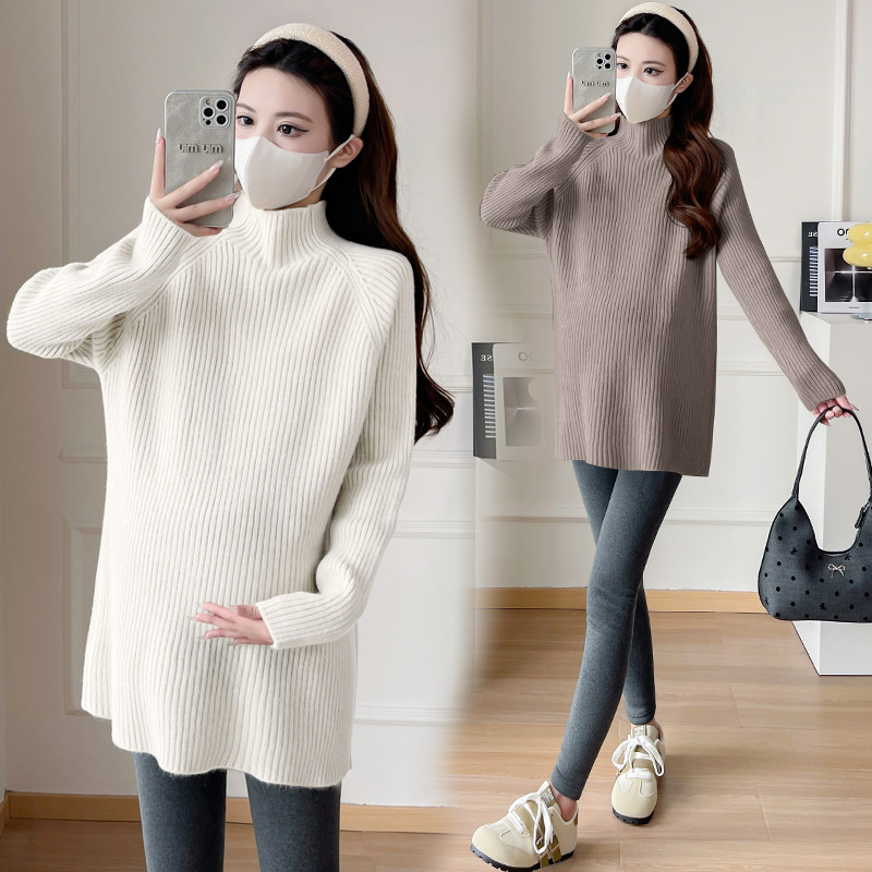 婧麒孕妇毛衣秋冬款2025新款宽松时尚半高领针织上衣中长款打底衫