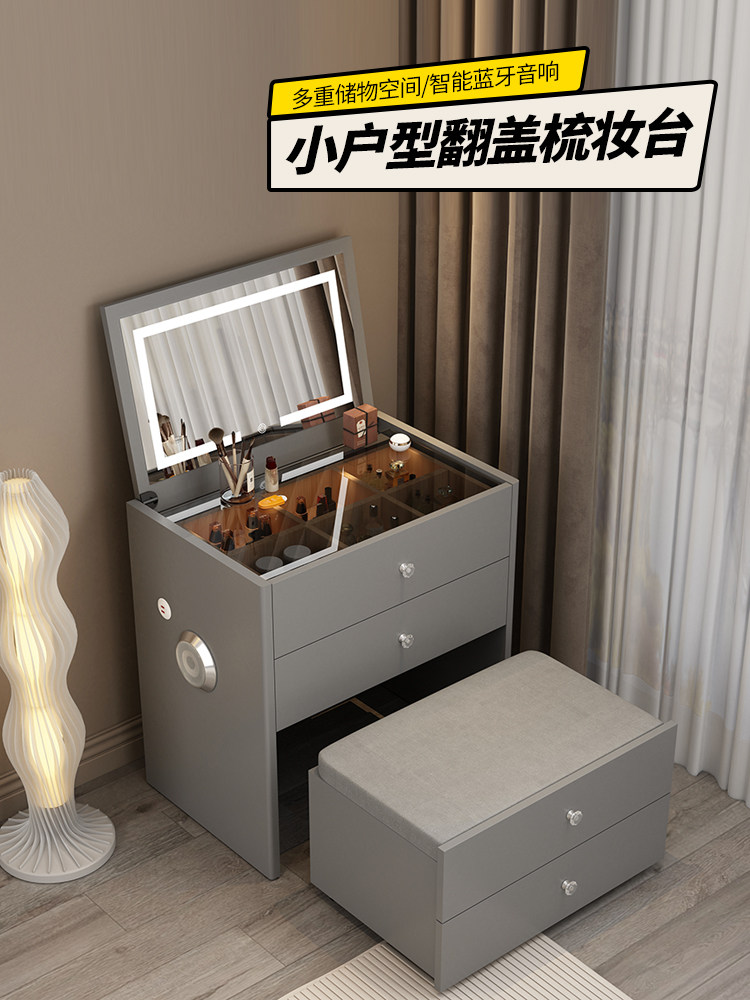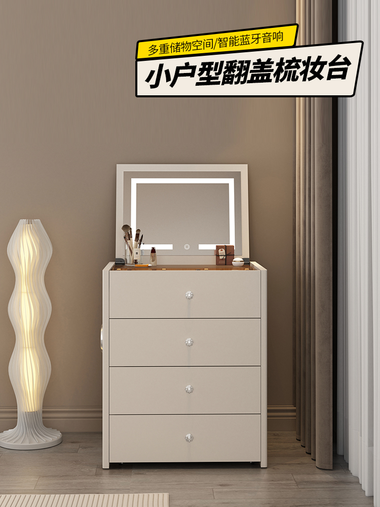 梳妆台小型翻盖卧室轻奢小户型简约现代床头化妆桌一体收纳奶油风