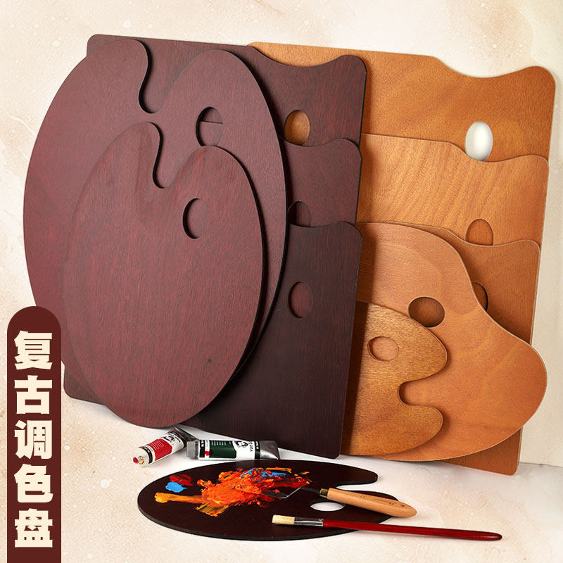 艺之笔油画调色盘木制大号油画封釉调色板胡桃色方形椭圆形油画丙烯颜料专用调色盘可清洗调色板盘