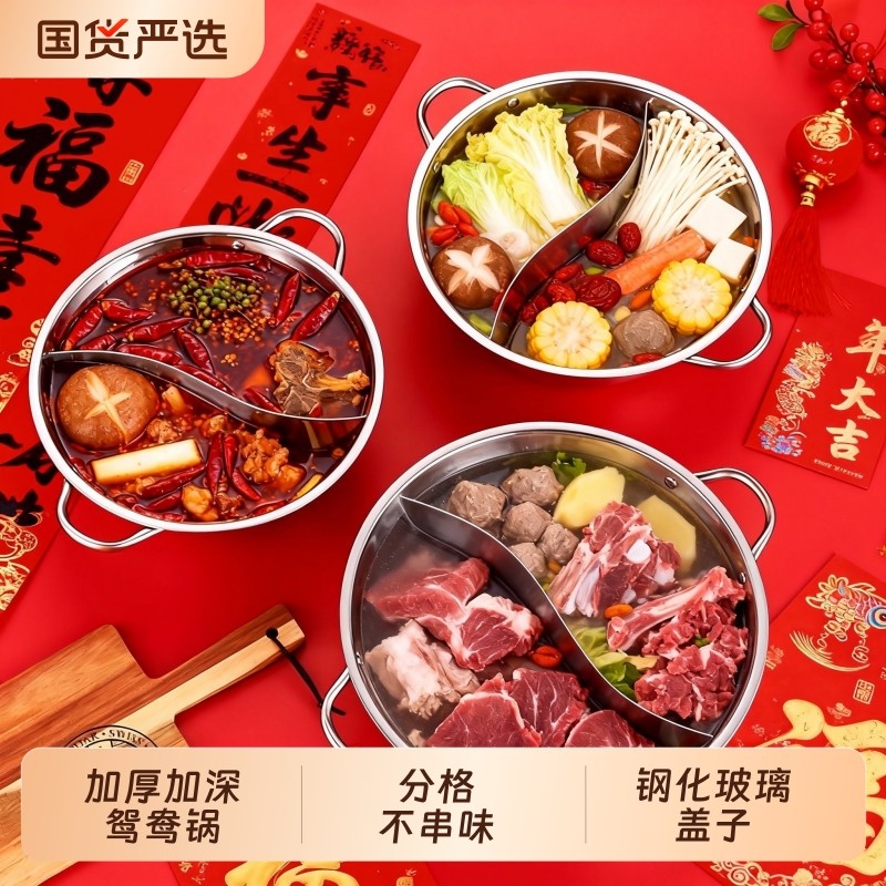 电磁炉专用不锈钢火锅盆加厚清汤锅干锅鸳鸯锅家用火锅锅具商用