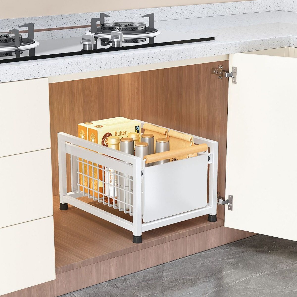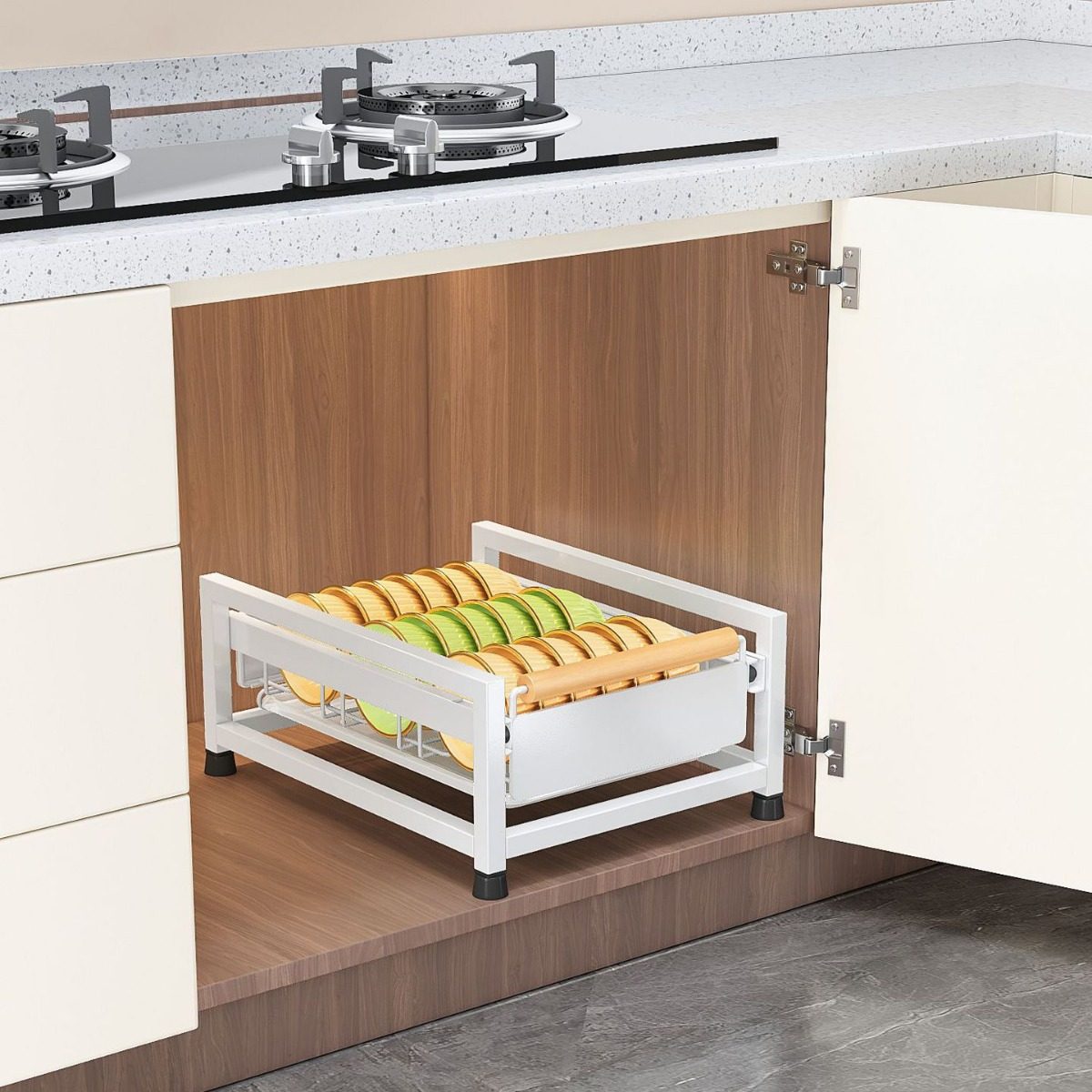 厨房柜内分层架免安装橱柜拉篮抽屉式调料收纳下水槽置物架碗碟
