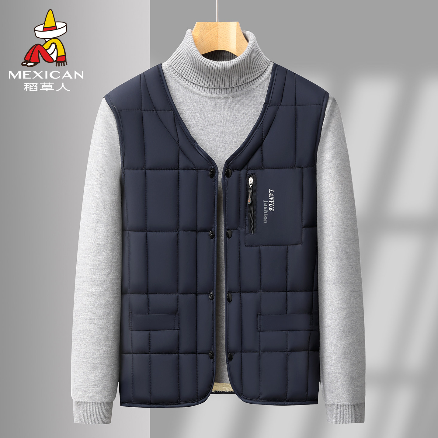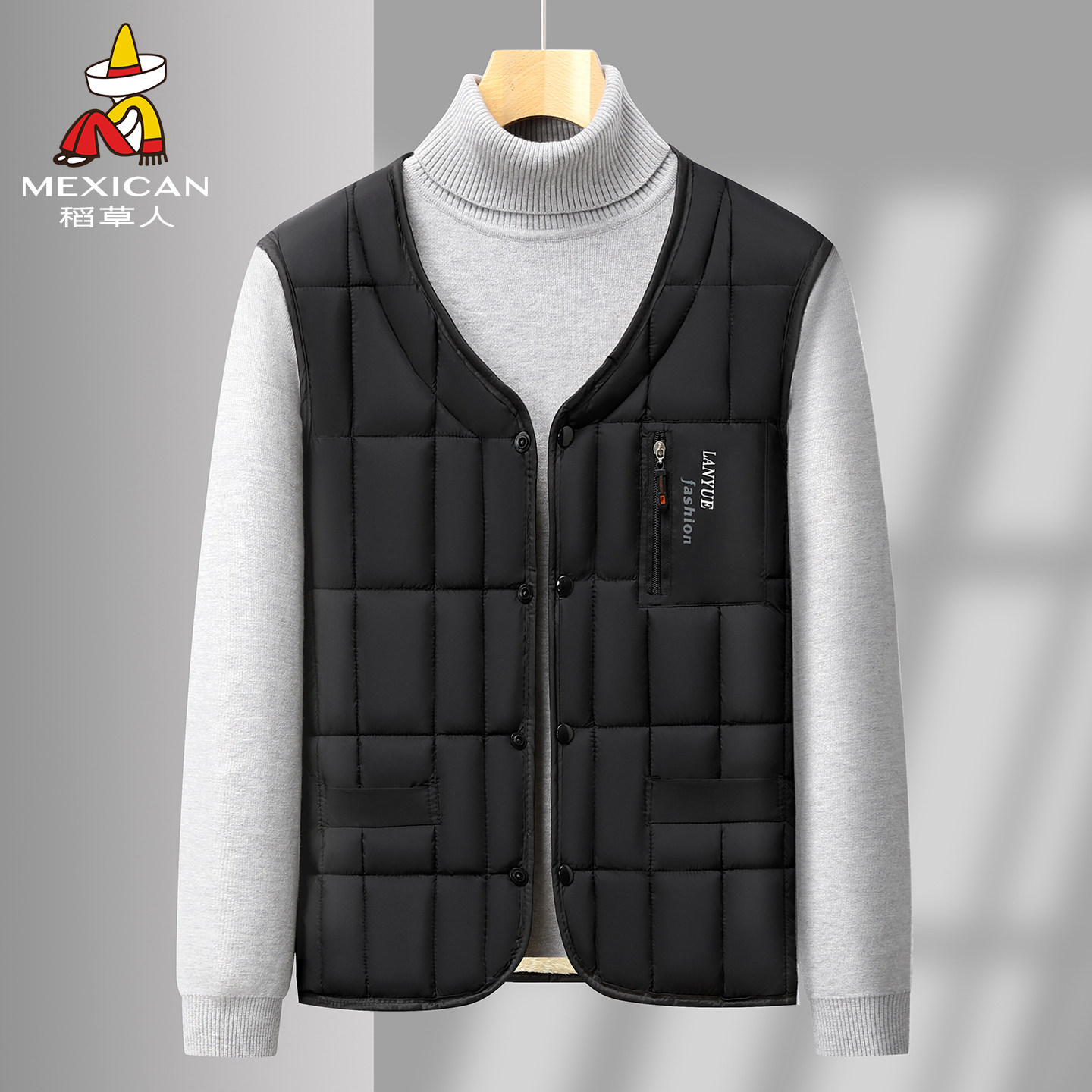 鸭鸭男士羽绒马甲多口袋爸爸秋冬季内穿坎肩V领背心中年鸭绒马夹