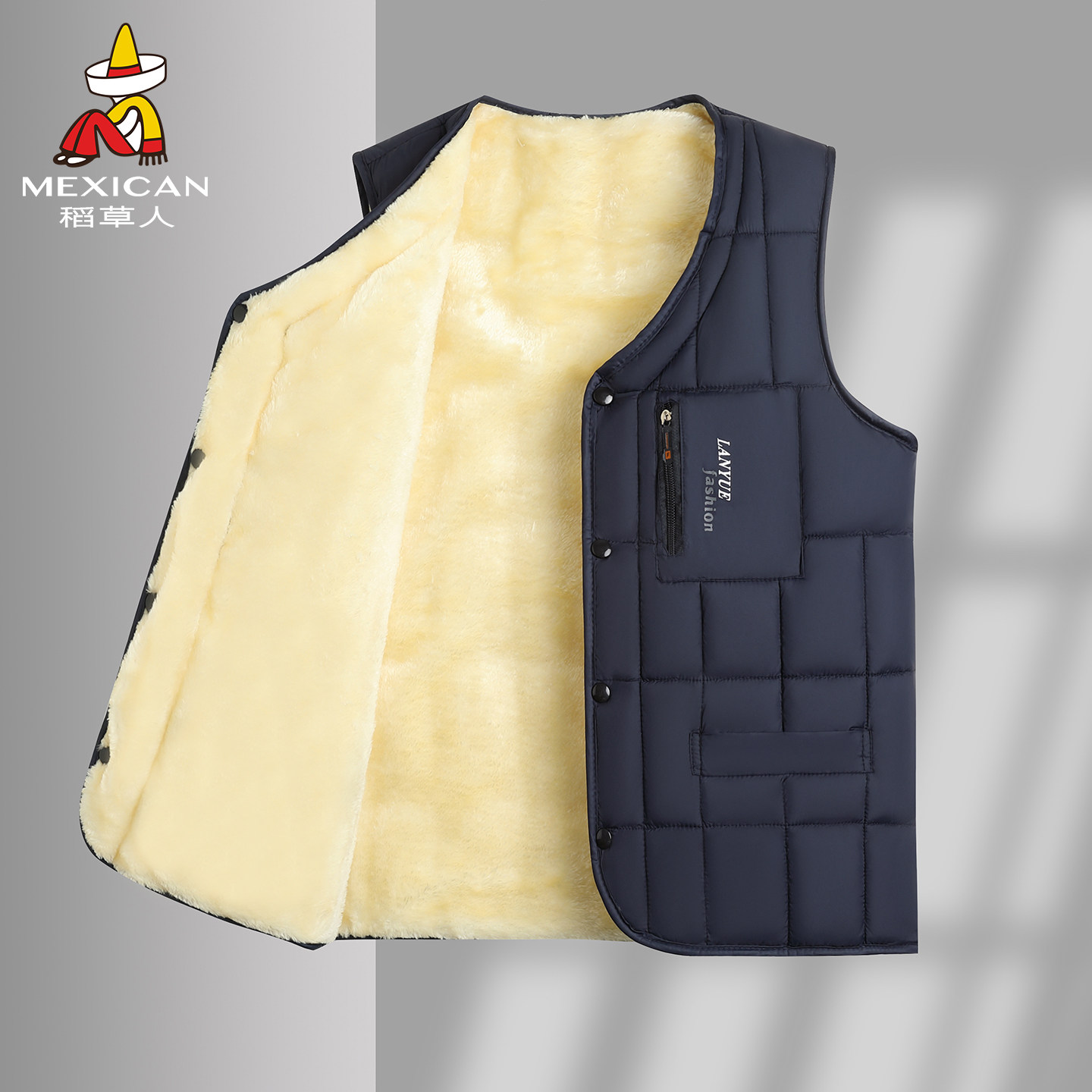 羊羔绒秋冬新款羽绒棉马甲男保暖背心加绒加厚爸爸坎肩中老年马夹