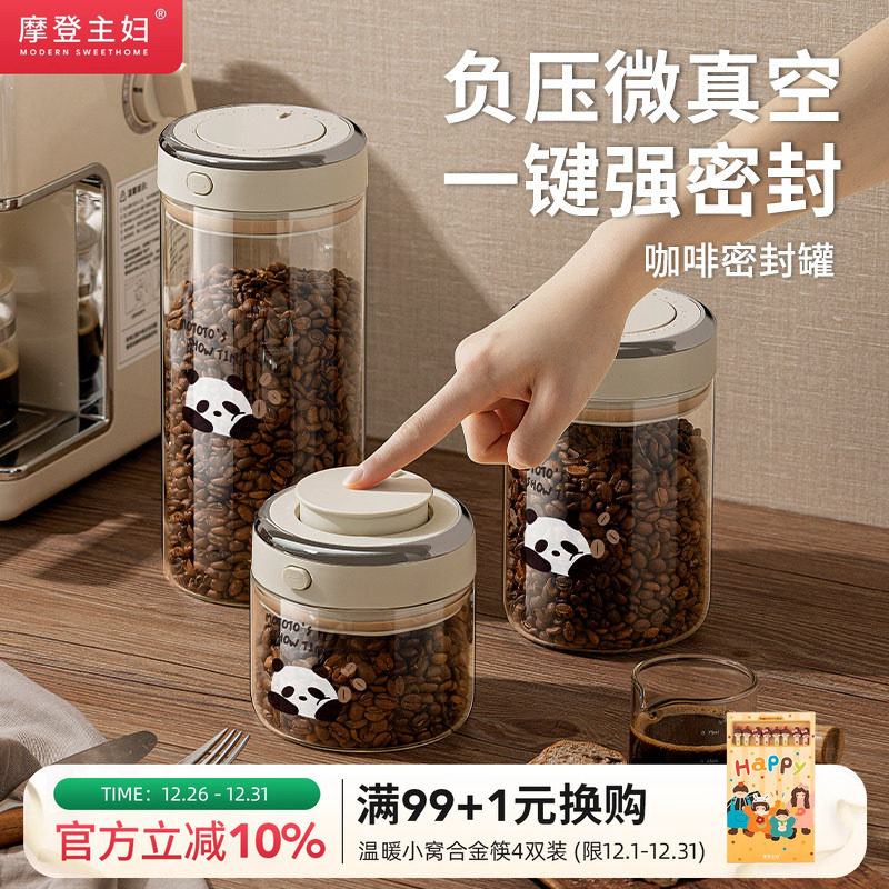 摩登主妇咖啡豆保存罐真空食品级玻璃密封罐养豆罐专用储物储存罐