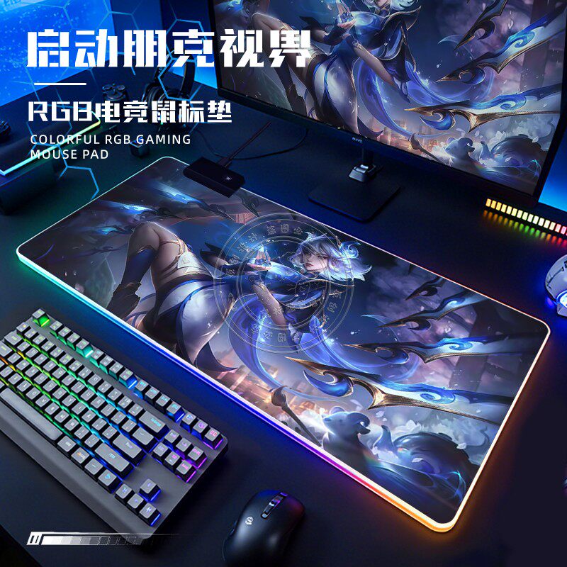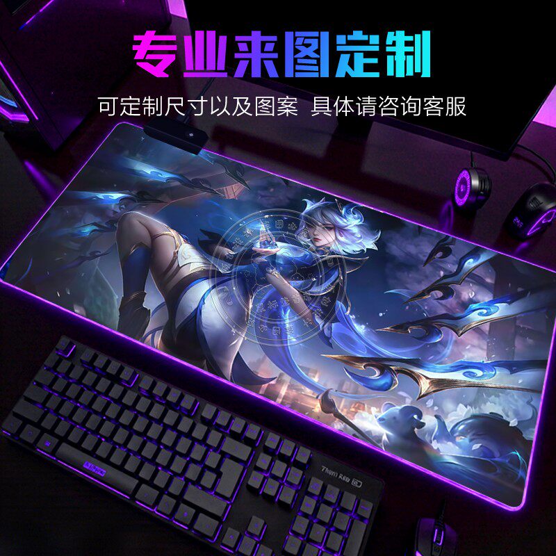英雄联盟发光鼠标垫超大游戏男生宿舍电脑桌工位办公桌防滑可定制