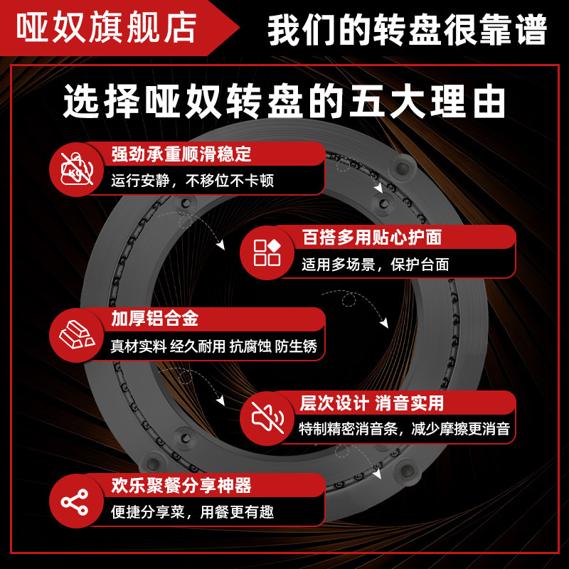餐桌饭桌转盘底座旋转轴承家用玻璃圆桌大理石转芯轨道滑轮铝合金