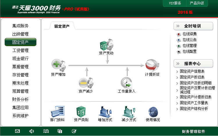 速达天耀财务pro软件集成账务出纳固定资产期末处理预算永久用