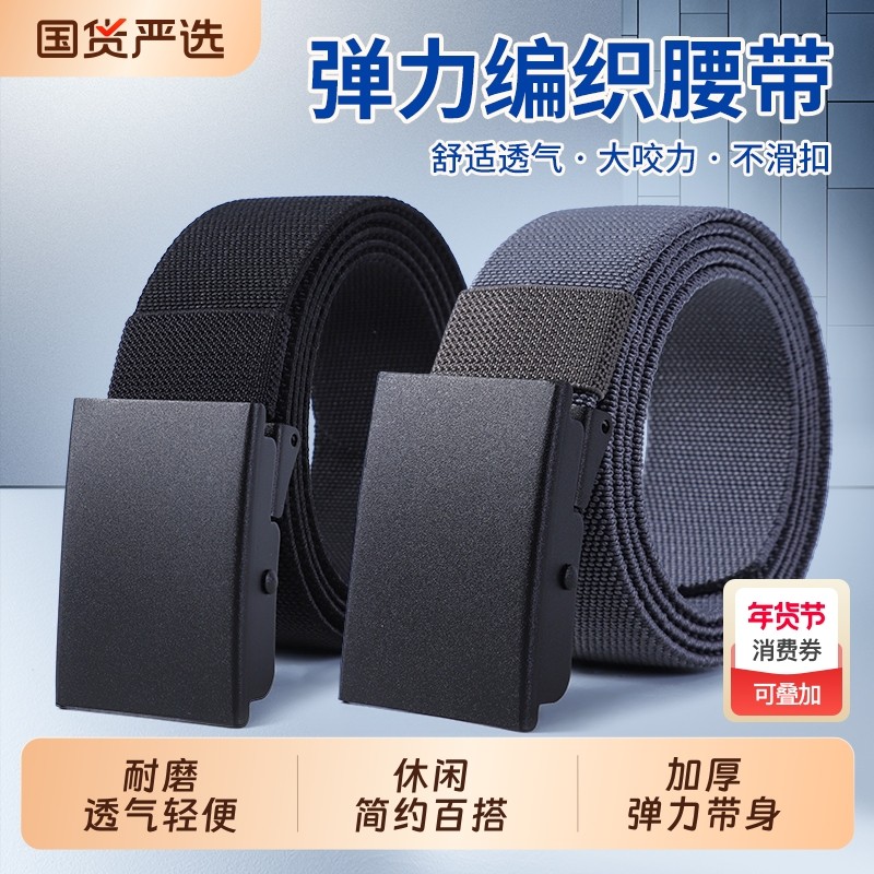 新款男士腰带自动扣编织帆布带松紧皮带高弹尼龙裤带平滑扣战术