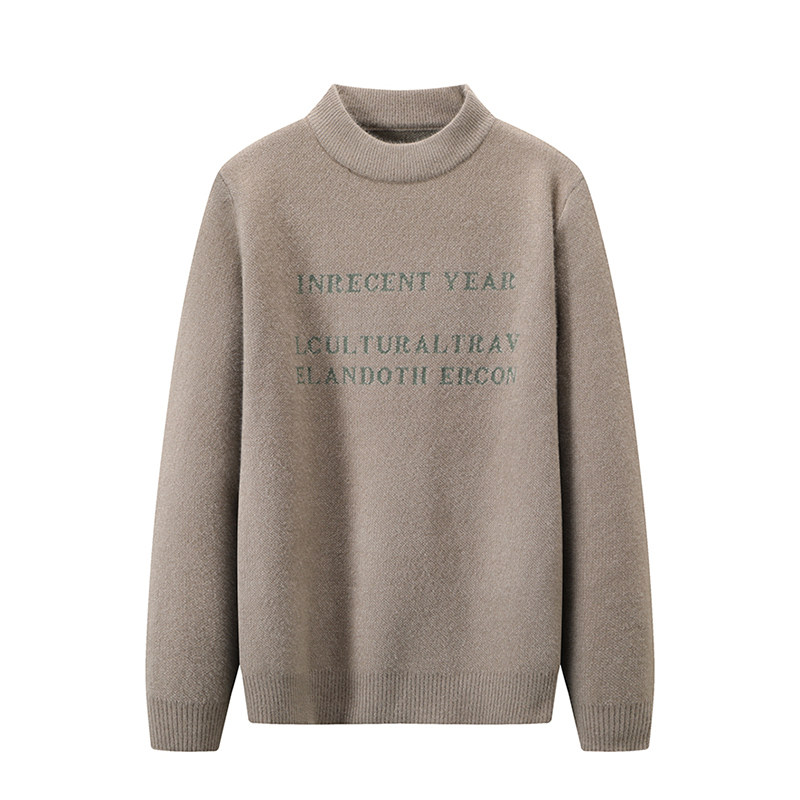 双股加厚100%纯羊毛衫半高领男毛衣秋冬季宽松套头针织打底羊绒衫