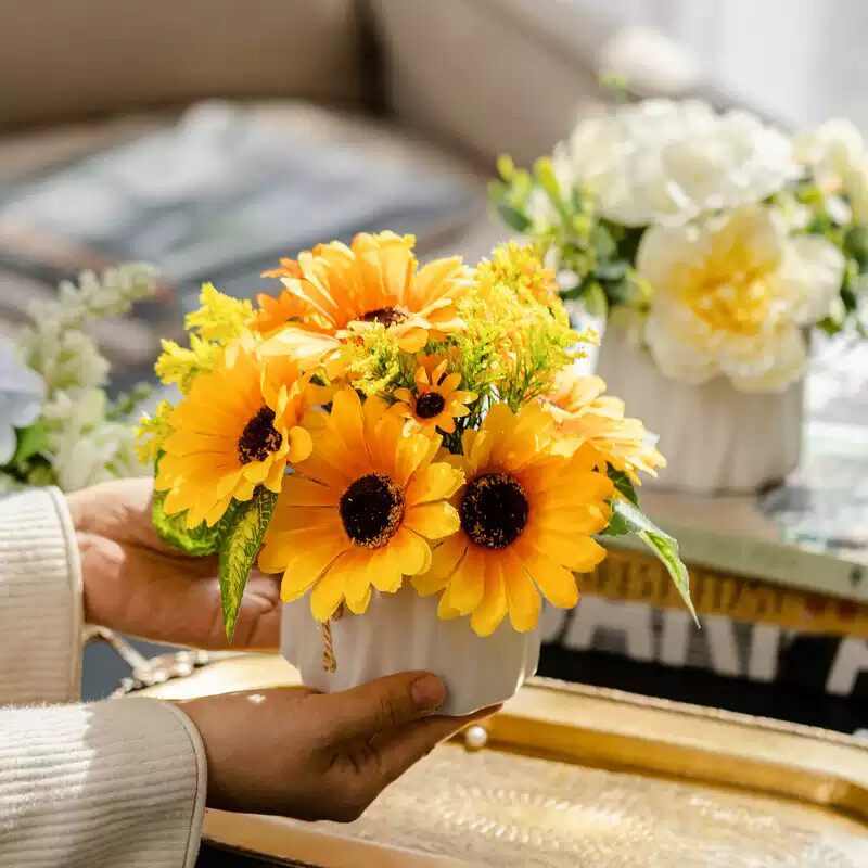 仿真雏菊花束塑料绢布假花室内客厅餐桌摆件装饰田园栅栏花坛插花