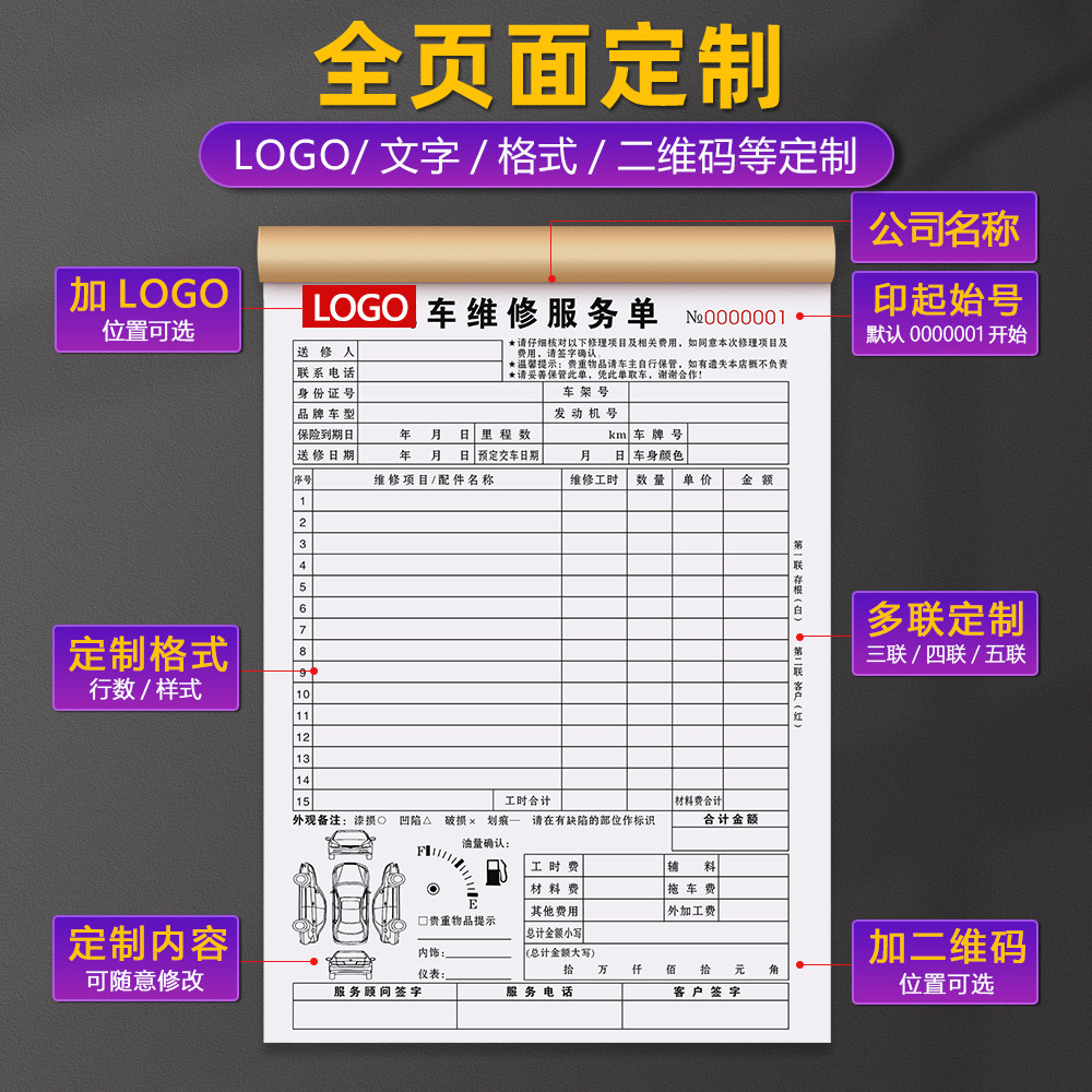 【加厚大本】汽车维修服务单二联汽修接车报价单据本修理厂配件销售清单三联车辆交车结算施工表修车保养工单