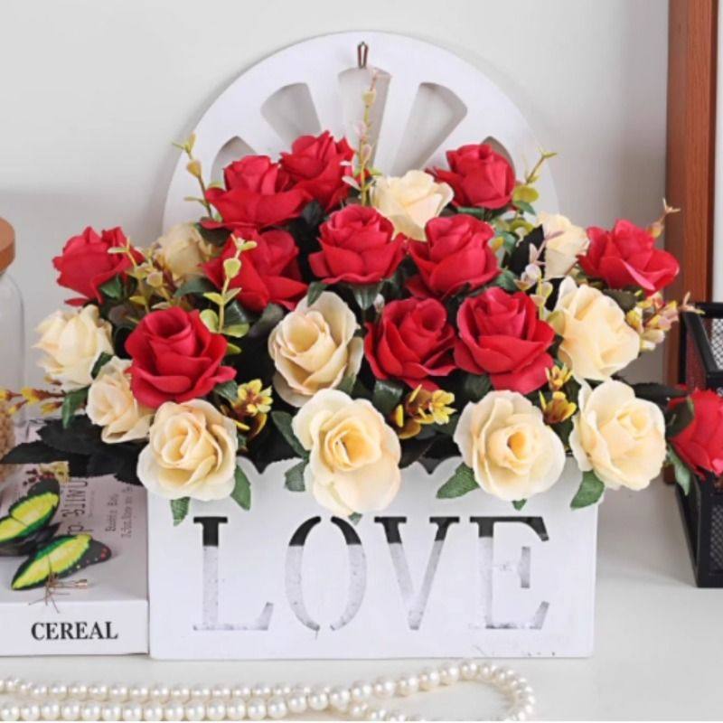 景德镇陶瓷玫瑰花枝仿真花永生花束插花瓶手工摆件装饰节日礼品
