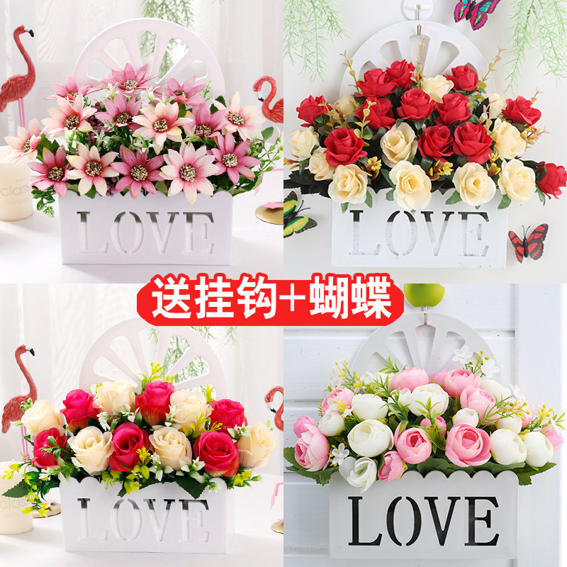 挂墙假花向日葵壁挂吊篮装饰客厅摆件塑料墙壁套装干花挂壁墙面