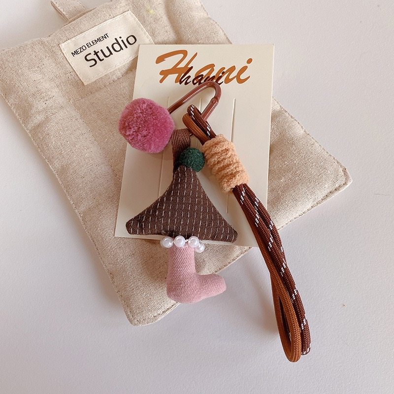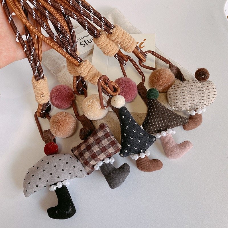 秋冬新款手机链 清新森系韩式ins风布艺蘑菇车钥匙扣挂件包包挂饰