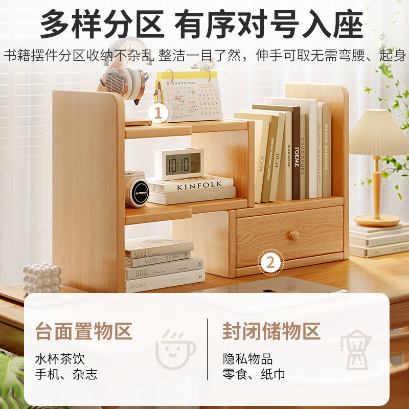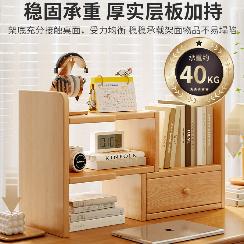全实木桌面书架桌上置物架办公室收纳改造神器书桌分层伸缩小书柜