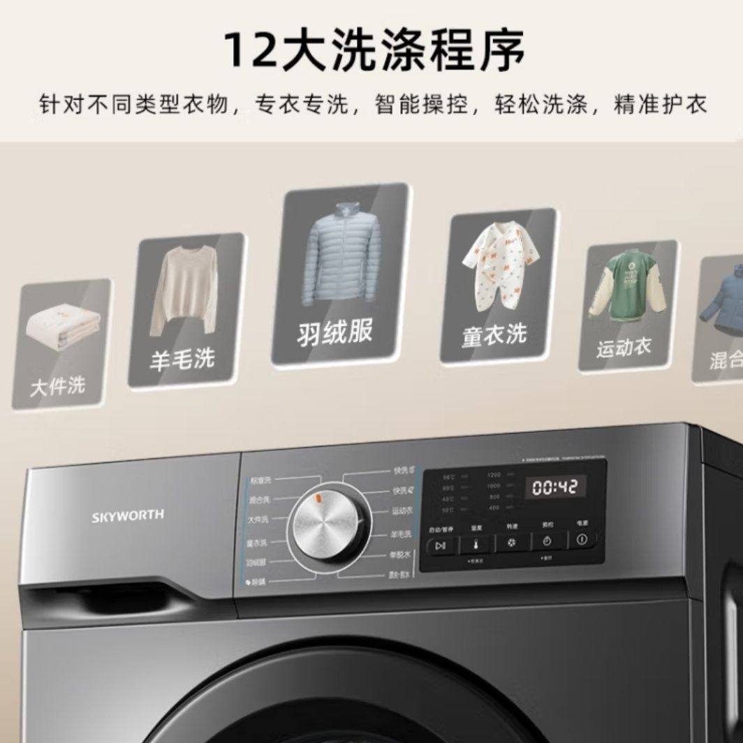 创维 10公斤滚筒全自动一级变频 除菌除螨 15分快洗 桶自洁洗衣机