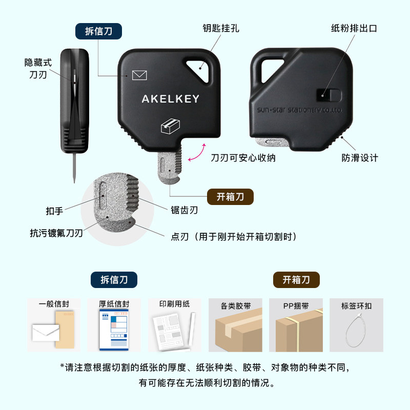 sunstar太阳星AKELKEY仿钥匙造型快递拆箱拆信刀开箱器折叠收纳安全防护办公家用