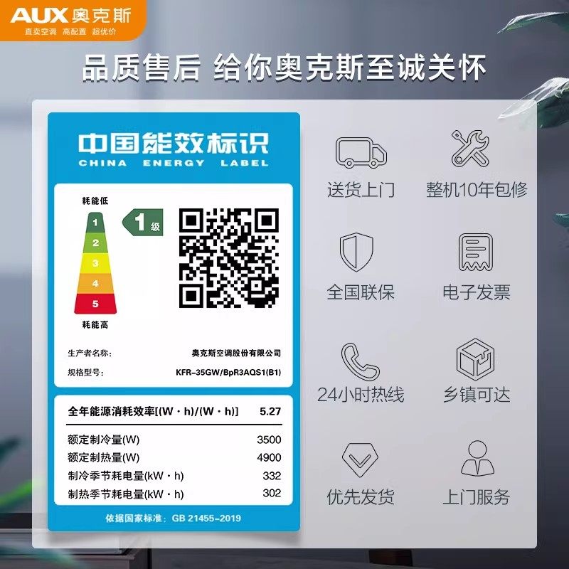 【官方自营】奥克斯空调1.5匹一级能效变频冷暖两用挂机省电侠