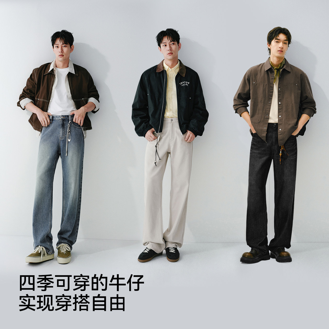 森柔牛仔森马牛仔裤男款2025新直筒裤长裤原色复古美式水洗宽松潮