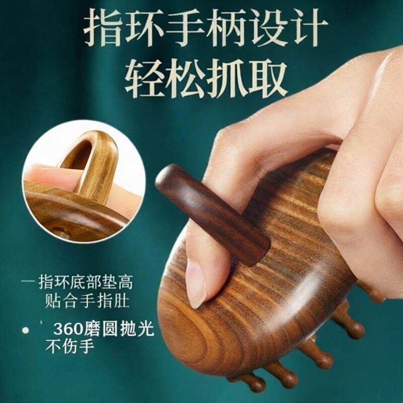 指环按摩檀木梳子天然圆盘头皮头部经络疏通毛囊养发神器头疗工具