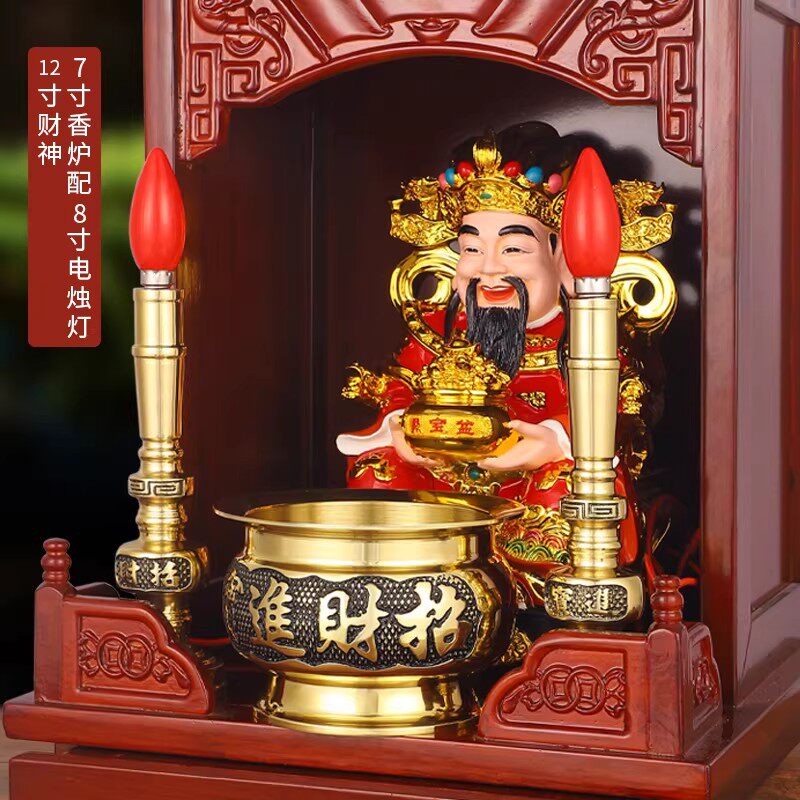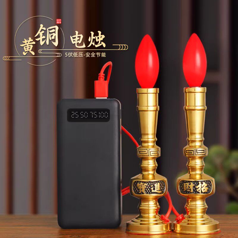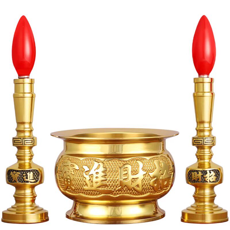 纯黄铜电子蜡烛灯上香供香家用室内香炉一体三件套烛台供奉台座
