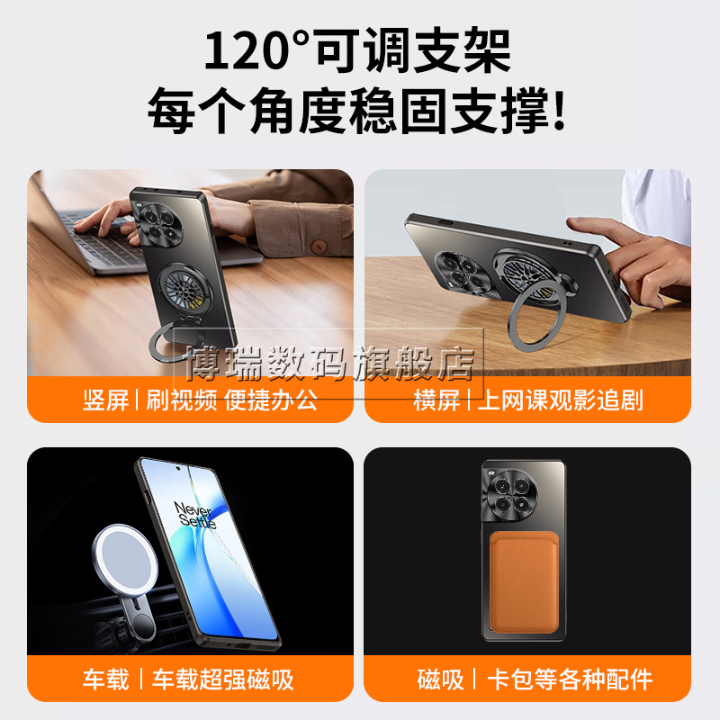 适用一加ace3手机壳新款1+ACE3Pro手机套磁吸旋转陀螺支架磨砂全包防摔镜头保护壳超薄oneplus高档散热por